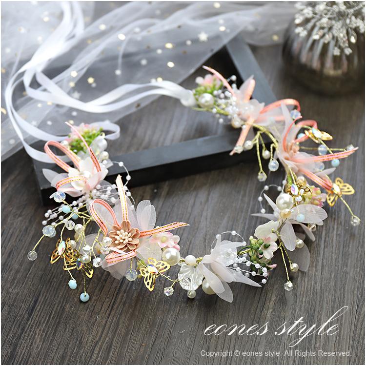 楽天市場 ヘアアクセサリー 手作り 髪飾り 子供 ヘッドドレス 女の子 ドライフラワーのような松ぼっくり ピアノ 発表会 花 リーフ ピンク ホワイト リボン クリスタルビーズ ティアラ カチューシャ 結婚式 ブライダル ウエディング 写真撮影 Kd12 イーワンズ楽天市場店